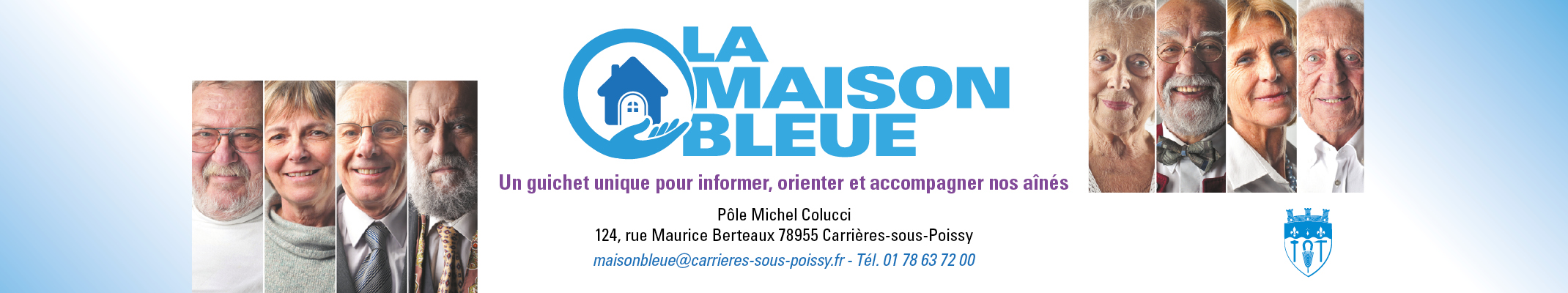 La Maison Bleue de Carrières-sous-Poissy est un « guichet unique » à destination des aînés (64 ans et plus) de la commune. Installée au Pôle Michel Colucci et géré par le CCAS, elle propose de nombreux services pour favoriser le « bien vieillir » :